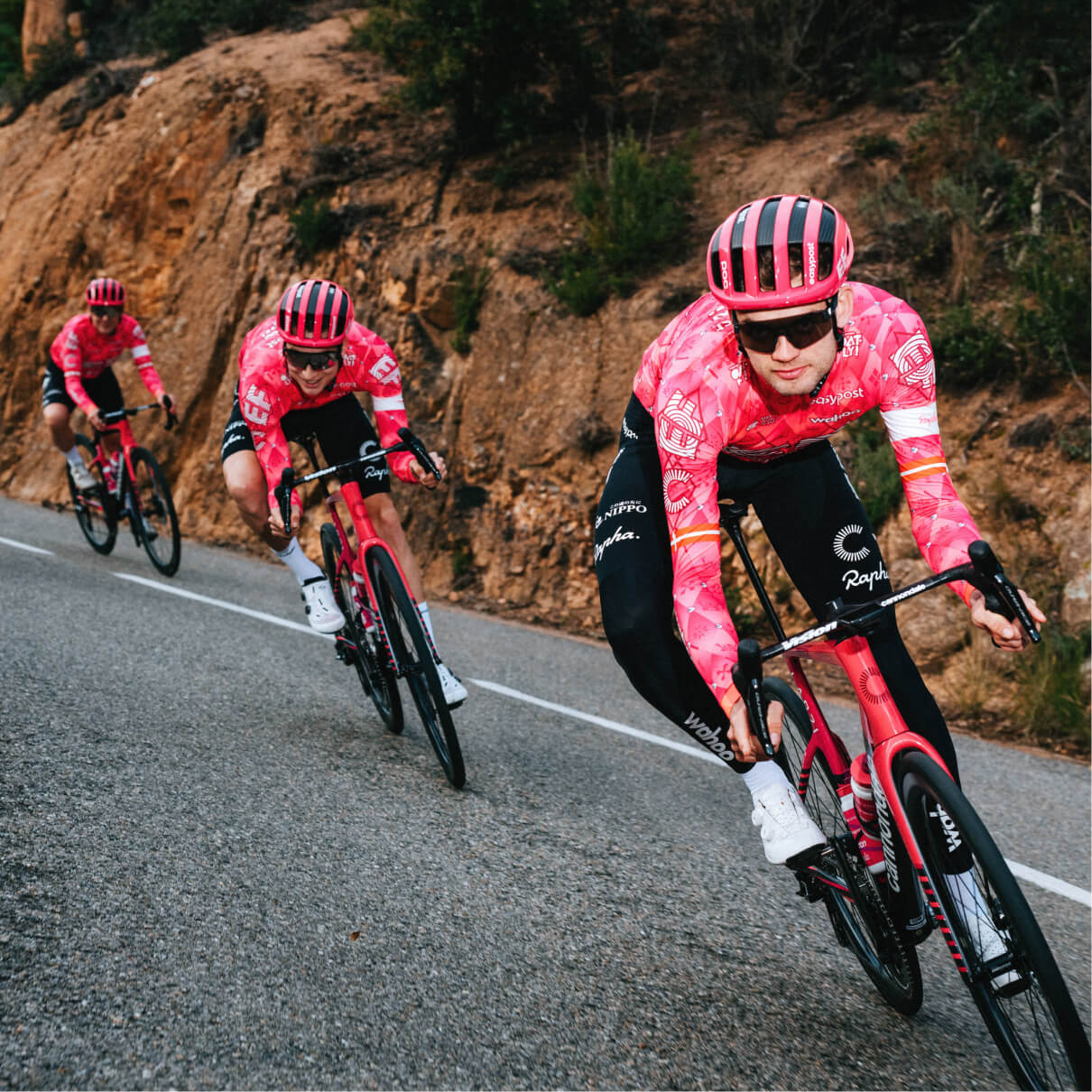 世界中で、EFエデュケーション・ファースト・イージーポストとEFエデュケーション・ファースト・オートリーのプロたちが、スーパーシックスEVOにまたがり大空を舞う。石畳での快適性、フロントからの空力特性、登りでの軽さなど、オールラウンドに活躍するレースマシンだ。