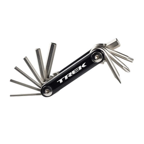 Trek Compマルチツールで、走行中の微調整やちょっとした修理に備えておこう。走りの最中に備えられ、簡単な修理ならわけなくこなせるBontrager Compマルチツール。