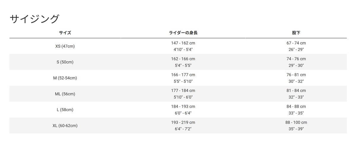 | Stem | XS: Bontrager RCS Pro, -7度, 長さ80mm S, M: Bontrager RCS Pro, -7度, 長さ90mm L, ML: Bontrager RCS Pro, -7度, 長さ100mm XL: Bontrager RCS Pro, -7度, 長さ110mm |