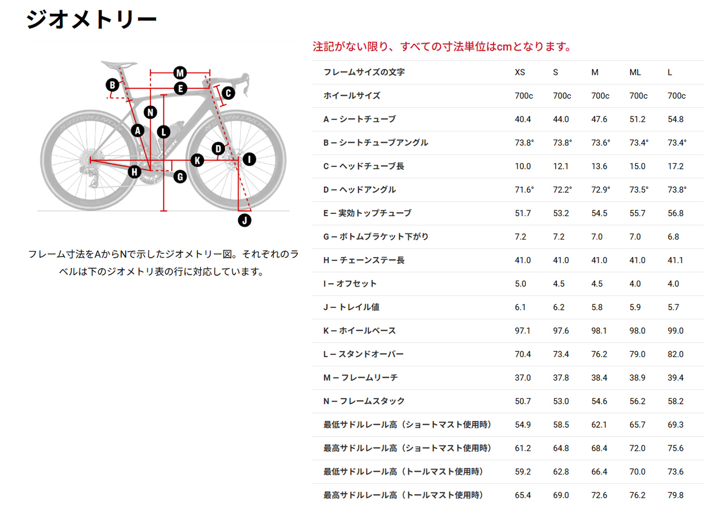 | *ハンドルバー/ステム(一体型) | Trek Aero RSL Road一体型バー/ステム, OCLVカーボン, レースフィット, 80mmリーチ, 124mmドロップ サイズ:XS:35cmブラケット幅, 38cmドロップ幅, 80mmステム長 サイズ:S:37cmブラケット幅, 40cmドロップ幅, 90mmステム長 サイズ:M:39cmブラケット幅, 42cmドロップ幅, 90mmステム長 サイズ:ML, L:39cmブラケット幅, 42cmドロップ幅, 100mmステム長 サイズ:XL:41cmブラケット幅, 44cmドロップ幅, 110mmステム長 |