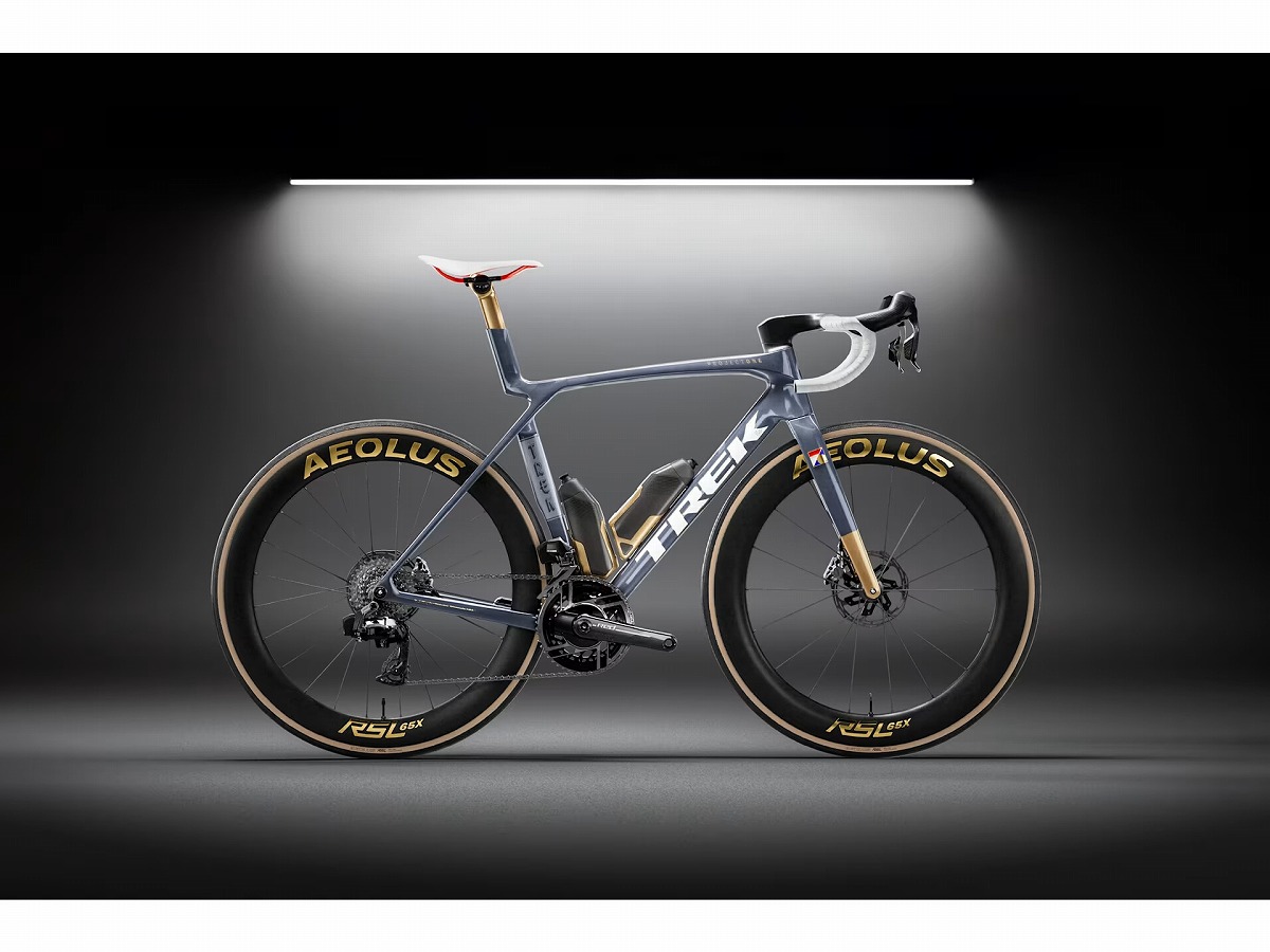 2026年4月13日までの期間限定先行予約のみ展開 - No.76は、最高峰900シリーズOCLVカーボンを採用したMadone SLR 9 AXS Gen 8がベース。この仕様は、パワーメーター付きの最上位SRAM RED AXS E1ドライブトレイン、50周年記念の特別仕様Bontrager Aeolus RSLカーボンホイール、赤いレールを備えた白×赤サドル、Trek Aero RSL一体型カーボンバー/ステム、空気抵抗をさらに抑えるRSL Aeroボトル&ケージを装備している。