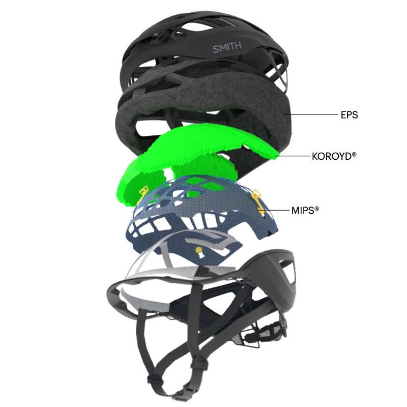 Koroydは、ハニカム形状の衝撃吸収素材で、EPS(一般的なヘルメット素材)と比べ、48%以上もダメージ軽減します。自転車用ヘルメット以外ではオートバイや飛行機用ヘルメット、チャイルドシート等で採用実績がある信頼性の高い素材です。