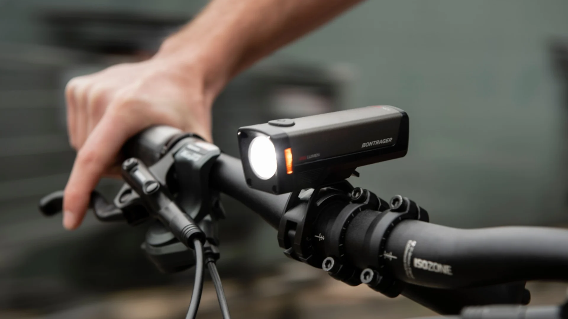 ボントレガーの日中用ライトはコンパクトでパワフル。そして日中に最長2km先の自動車ドライバーの注意を引く点滅パターンを採用する。