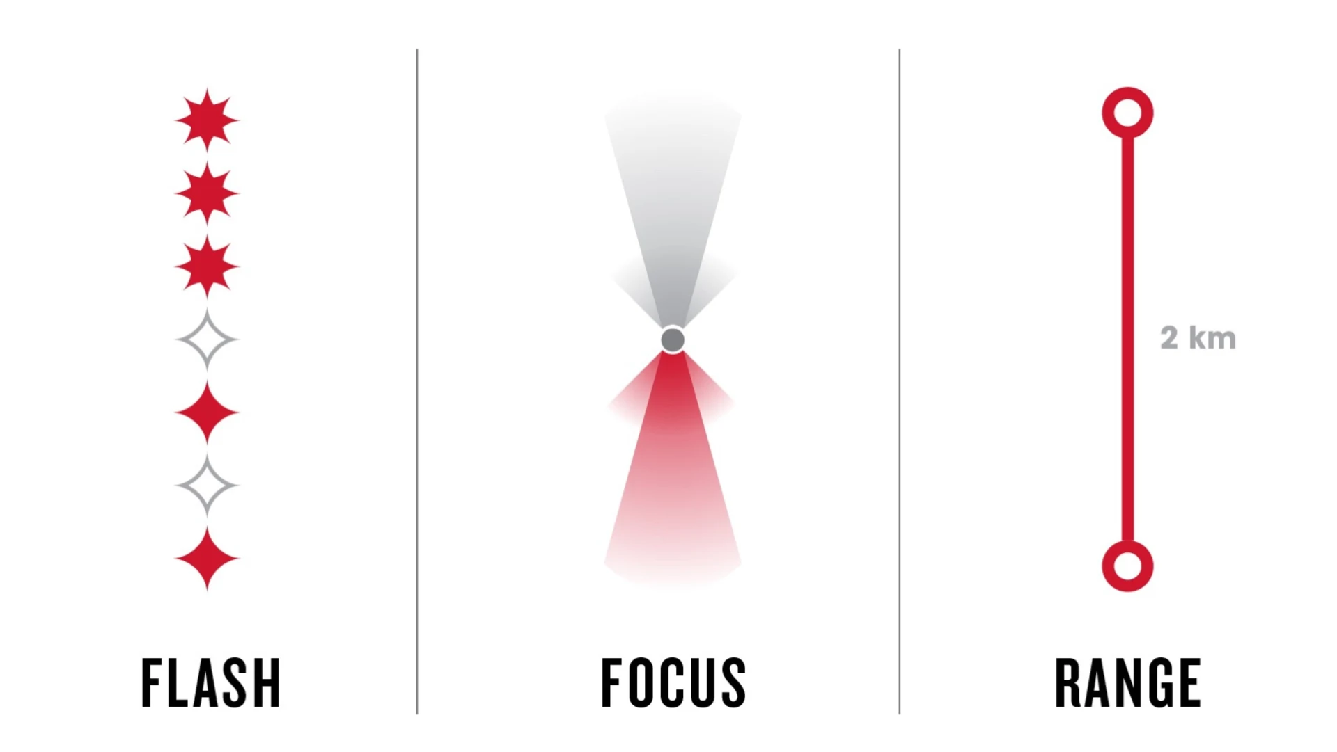 - フォーカス、フラッシュ、レンジと日中に究極の被視認性を発揮する専用設計の照射パターン