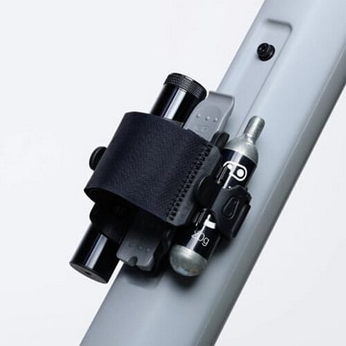 ケージはベルクロタイプで、ボトルだけでなくスペアチューブなどを取り付けることが可能です。