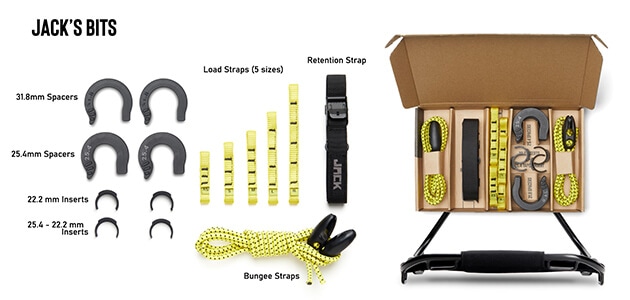 ・JACKは2本の登山用の強度を持つストラップを使用して、ハンドルバーにしっかりと固定します。・一切の自転車用工具を必要とせず、取り付け・取り外しは1分もかかりません。