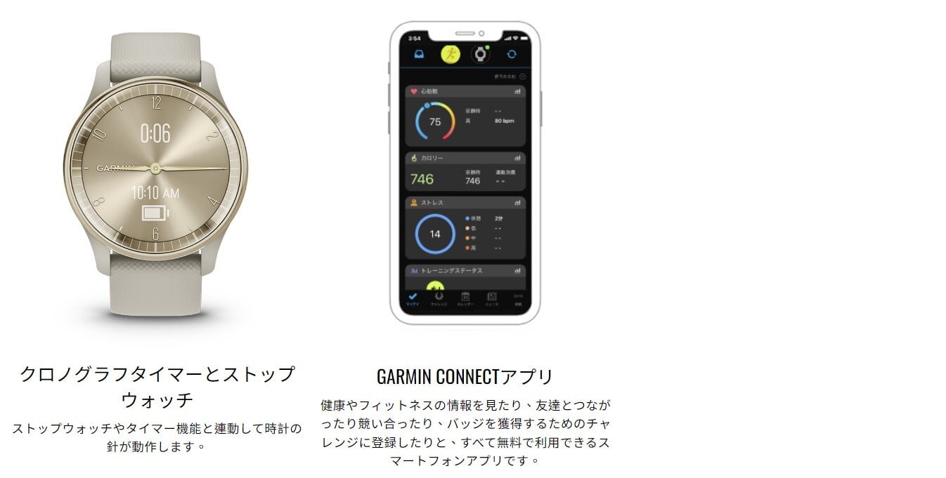いつでも素敵なわたしのパートナーハイブリッドスマートウォッチ「vivomove Trend」は、クラシックなアナログスタイルに、スマートフォンの通知やSuica決済など、日常シーンで不可欠なスマート機能を搭載しています。