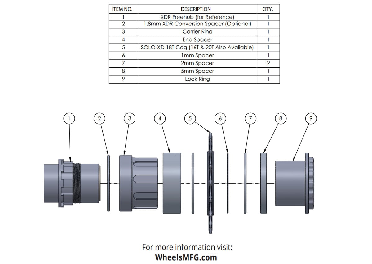 XD/XDRハブ用SOLO-XDシングルスピード変換キット