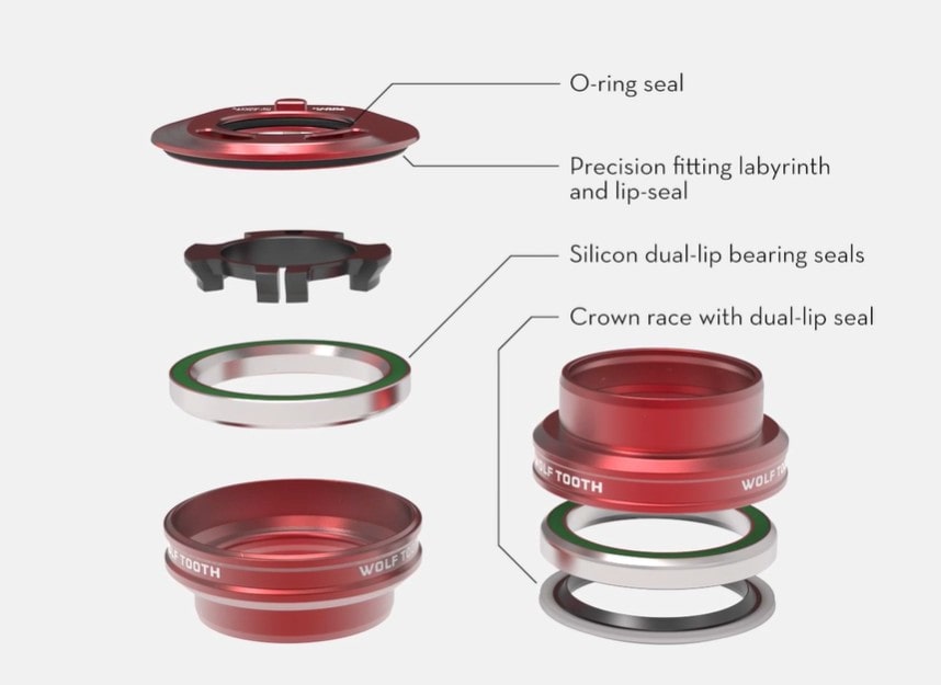 ベアリング交換にはコックピット全体の分解とブレーキブリーディングが必要となるため、フルインテグレーテッドバイクでは環境に対する密閉性が非常に重要です。Wolf Toothのすべてのヘッドセットと同様に、この新しいオプションはクラス最高のトリプルシールシステムを採用し、ベアリングを環境から保護します。