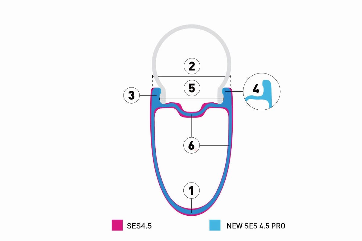 SES4.5 PROはSES4.5から1mmリムハイトを下げ、使用する素材、リム、ハブの形状など全て見直し、前後セットで1,295gという重量を実現。