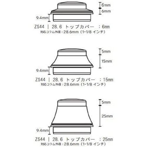 - ZS(ゼロスタック)ヘッドセットを使用するフレームで、ヘッドチューブ内径がアッパー44mm、ロア56mmのもの。
