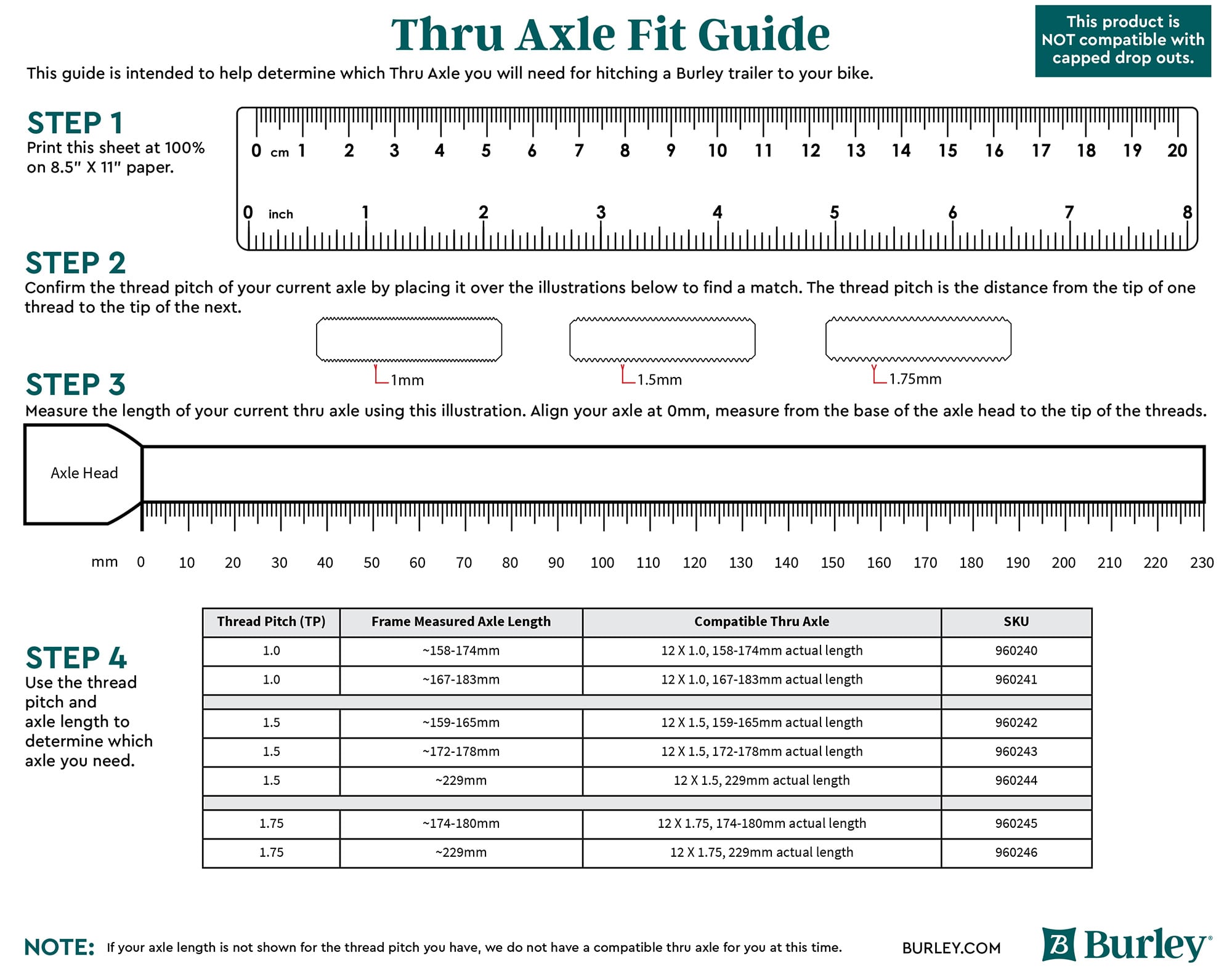 ご不明な場合は自転車のご購入店、もしくは製造メーカーにスルーアクスルの仕様(シャフト長、シャフト径、ネジピッチなど)についてご確認ください。