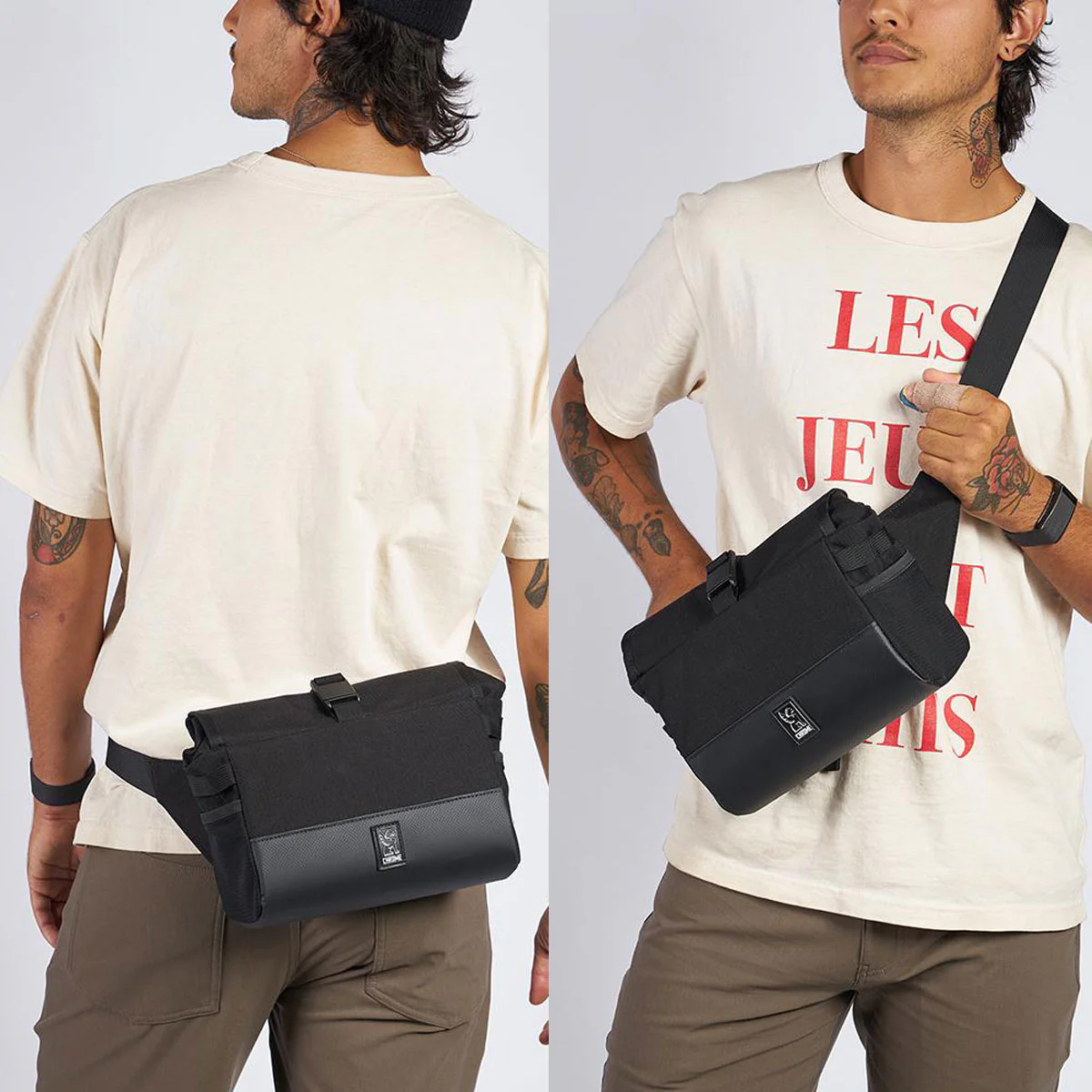 ダブルトラック ハンドルバー スリング バッグは、ハンドルバーバッグのみならず、自転車から降りた際にはショルダーやウェストバッグとしても使える万能型バイクバッグ。