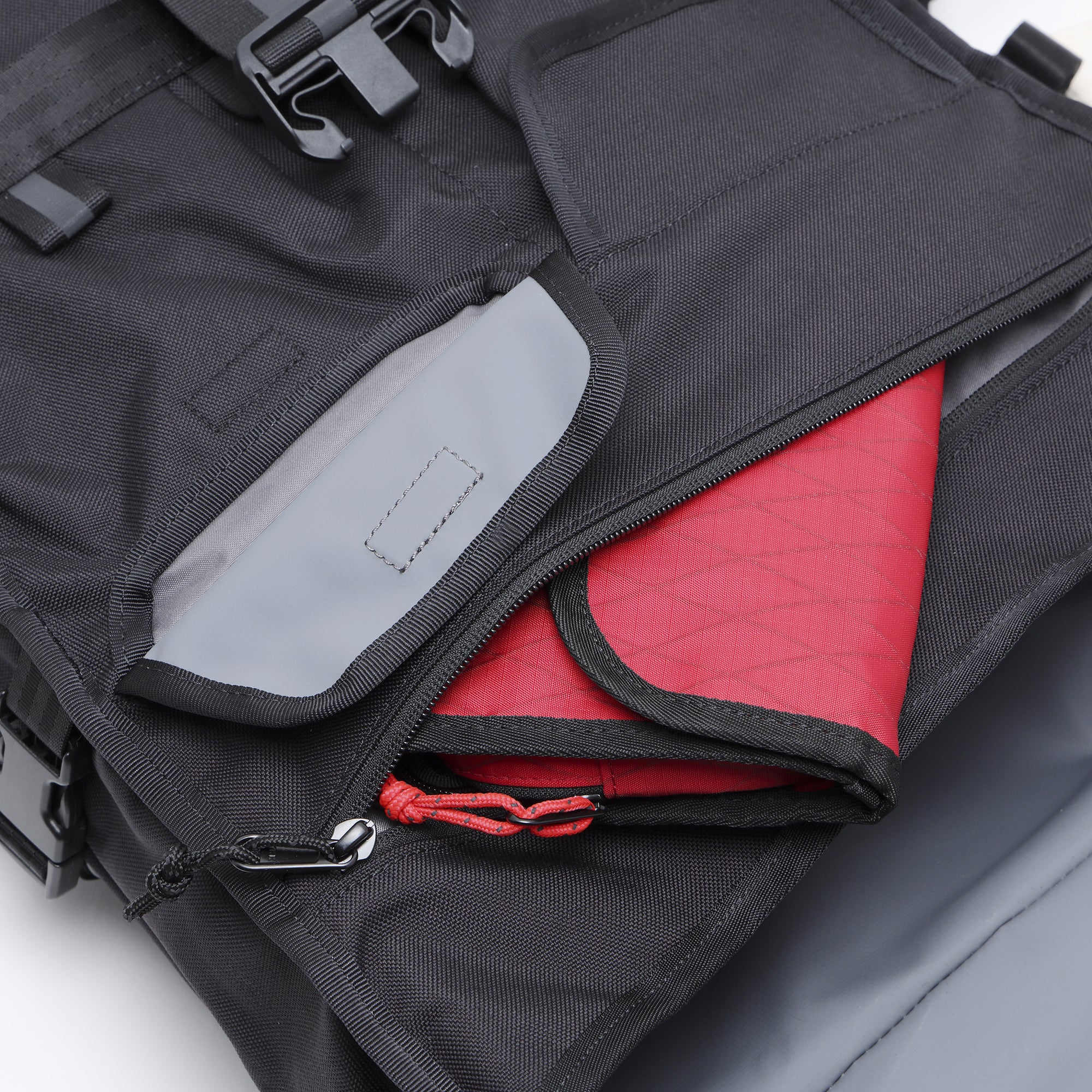 | 素材 | 【BLACK】 - Outer shell material 1050D Recycle Nylon 500D TPE Tarp - Liner material 210D Recyced Nylon with TPA laminated 500D TPE Tarp 【BLACK X】 - Outer shell material RecX Laminate: 210D RECYCLED NYLON + 1000D HT POLYESTER + POLYESTER 70D*190T TAFFETA 0.5mm TPU LAMINATED WITH BLACK REFLECTIVE FILM - Liner material 210D Recyced Nylon with TPA laminated 500D TPE Tarp 【SAGE】 - Outer shell material 1050D Nylon 1680D Ballastic Nylon with PU backing - Liner material 210D Recyced Nylon with TPA laminated 500D TPE Tarp |
