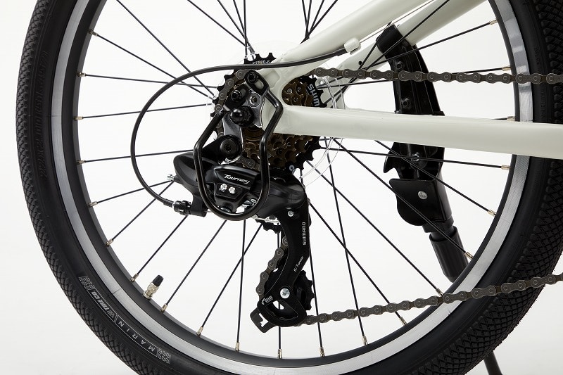 より軽量に設計しており、6 段変速で坂道もスイスイ登れ、太いタイヤで草むらや土 の上などもガンガン走れます。身長が低いお子様でも乗りやすい特別な一体型サドルを使用しています。ブレーキもお子様の手の大きさに合わせて、 握りやすくなっています。安定して走れるように設計していますので安心、安全です。