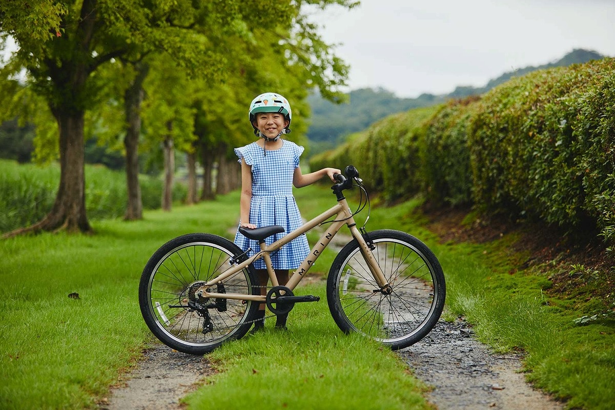 小学校 3年生ごろから乗れるマウンテンキッズバイクです。身長が低いお子様でも乗りやすい特別な一体型サドルを使用しています。そろそろスポーツや習い事が始まる年齢だと思います。お友達と一緒に帰る事も多くなる中で、自慢できる自転車を目指しました。スピードを出しがちなお年頃のお子様の為によくきくブレーキを使用しています。バイクが軽量で6段変速なので坂道もスイスイよく登ります。