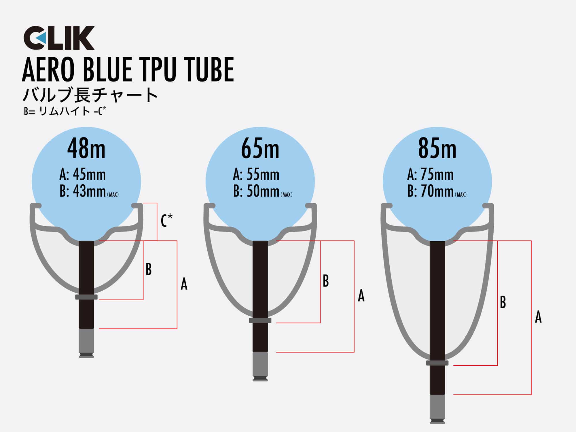 CLIK VALVE ( クリックバルブ ) チューブ AEROBLUE TPU TUBE ( エアロブルー TPU チューブ ) 700X32-45 48MM