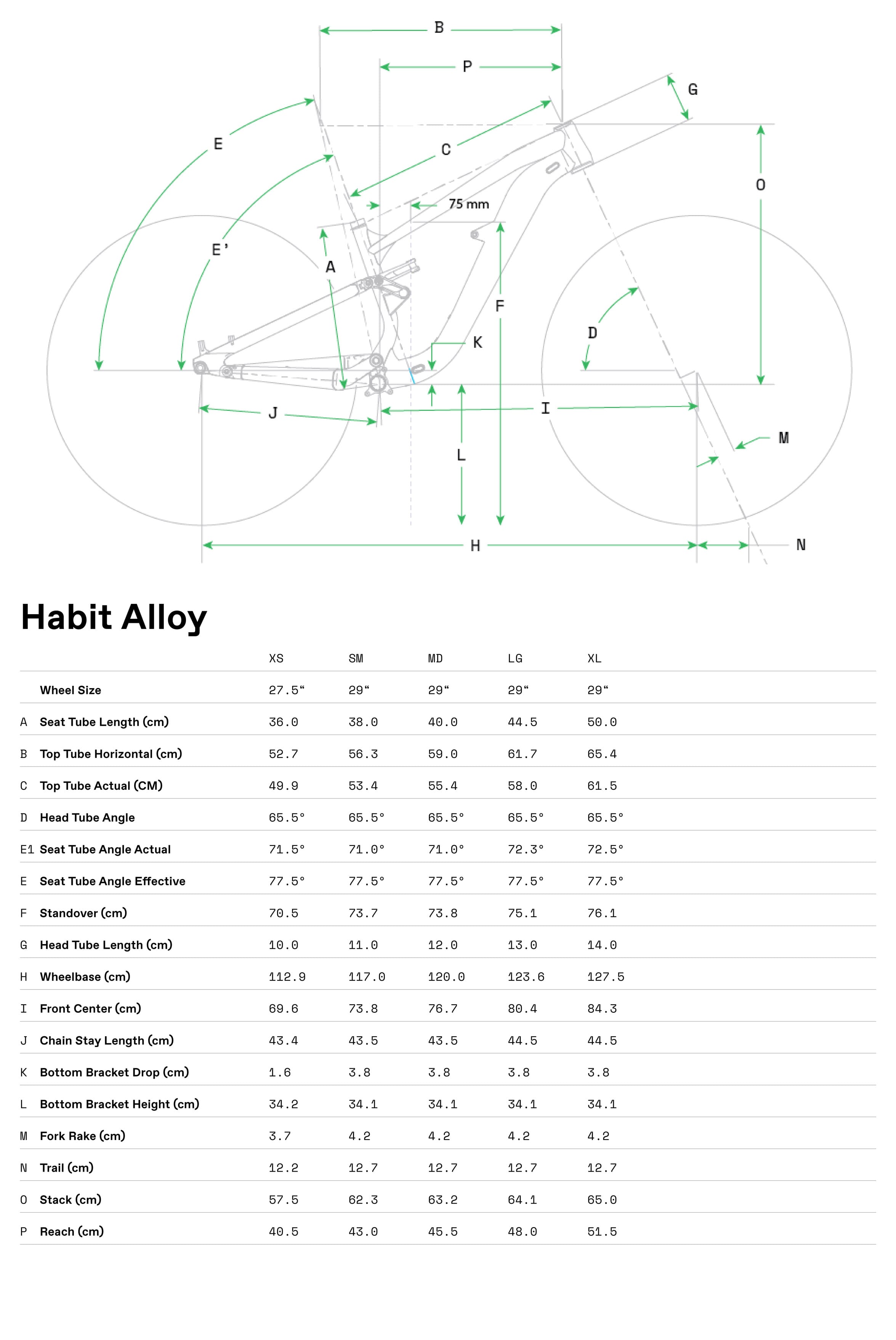 | フレーム | Habit SmartForm C1 Alloy, 130mm travel, Proportional Response Suspension and Geo, 55mm chainline, ISCG05, BSA threaded BB, post mount brake, tapered headtube, DirectLine internal cable routing, UDH hanger |