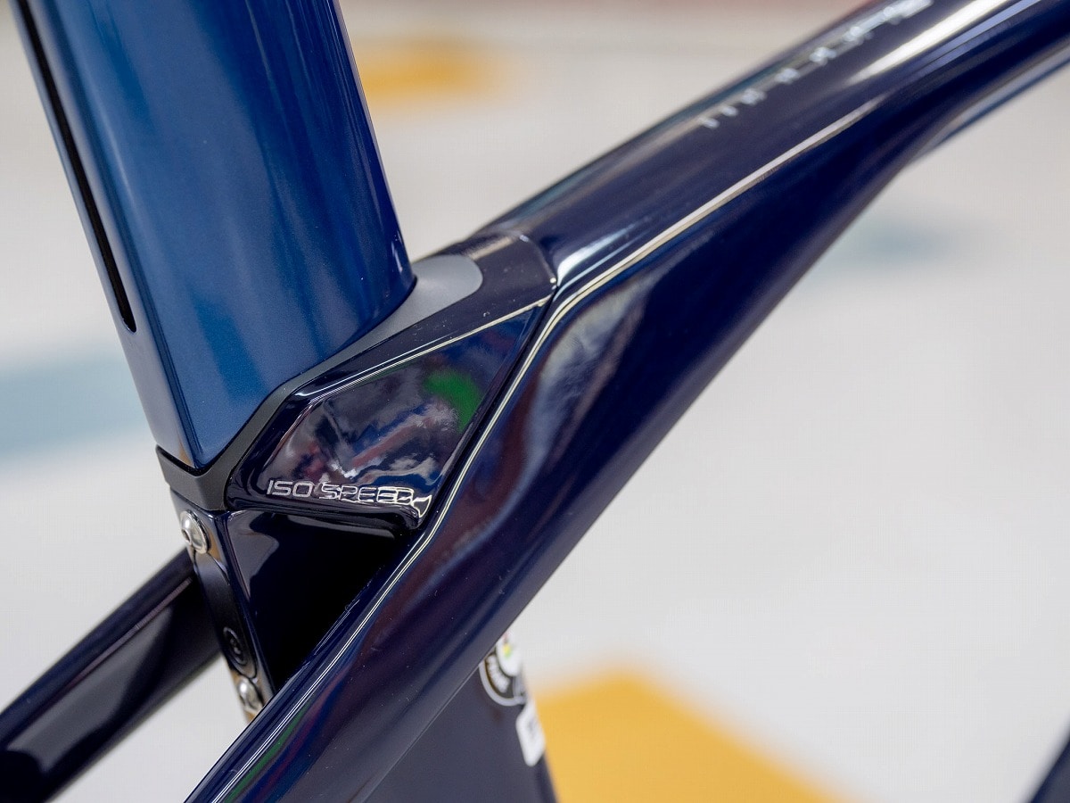 MADONEと言えば今では穴あきフレーム形状のISO FLOWが特徴的ですが、GEN6はトップチューブとシートチューブ上部が分離するISO SPEEDを搭載。今は無きスライダーでしなりの強弱を調整するシステムで乗り心地ならこっち?