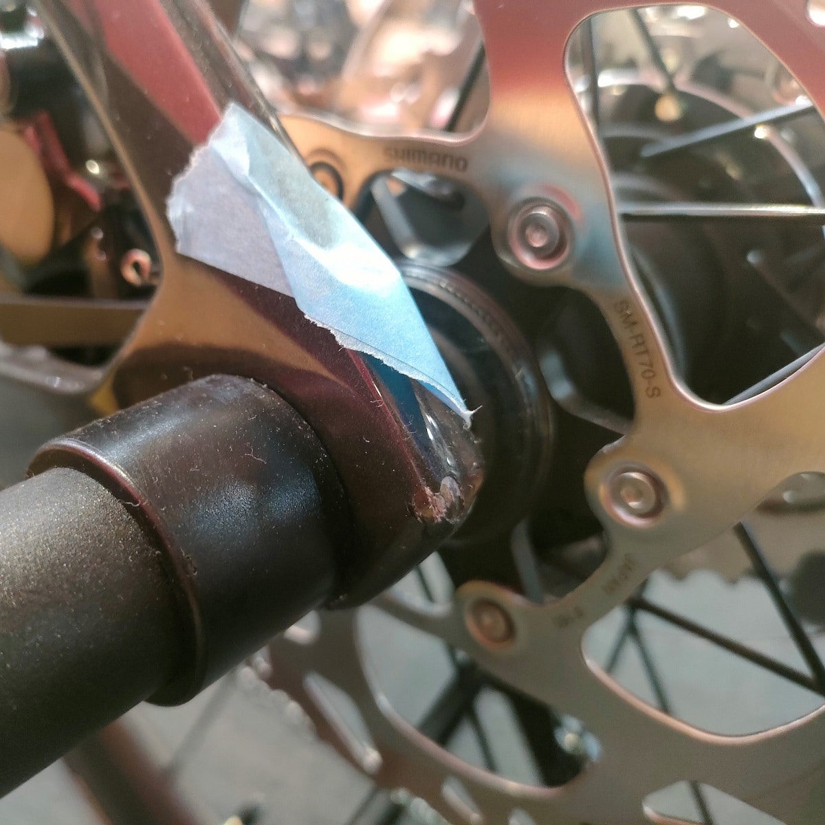 左側リアエンド部、シートポストに塗装はがれがあります。機能上の問題はありません。