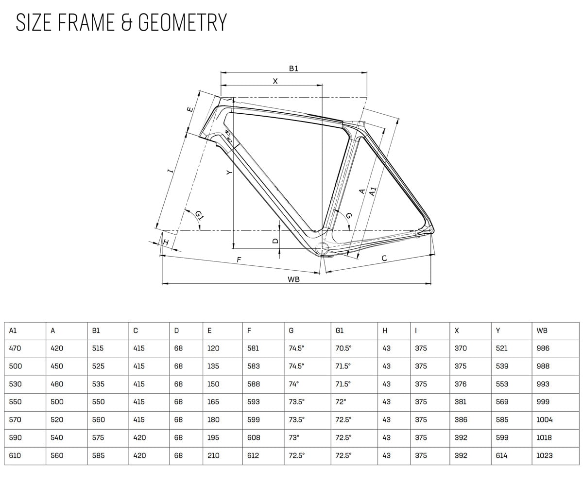 | Frame | INFINITO Carbon-CV, Disc Brake, Mechanical/Electronic Di2/EPS, TC19, compatible with 32" tire, BBset pressfit 86,5x41, rear dropout 12x142mm thru axle, sizes 44-47-50-53-55-57-59-61cm |