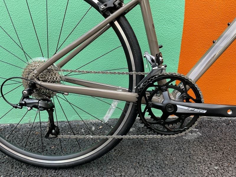 変速にはシマノのクラリスを採用し、前2×後8の16段変速でスポーツバイク初心者の方でも調節のしやすい変速です。