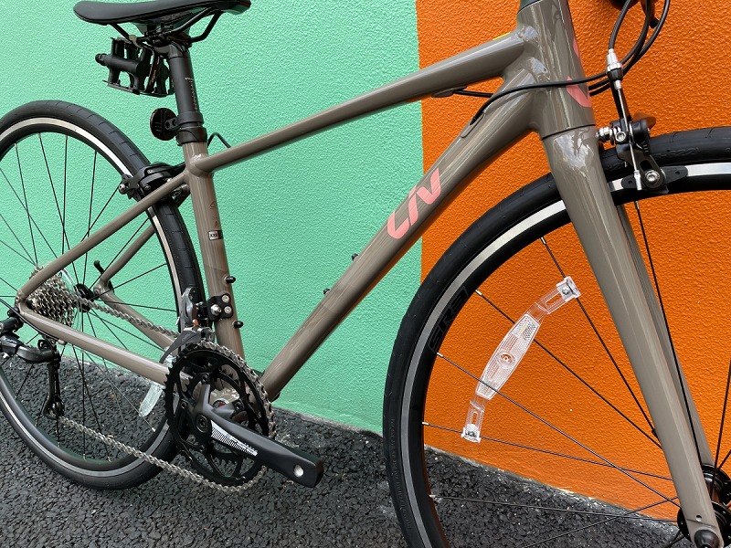 ケーブルをフレームに内装しているので見た目もクリーンになり、カラー名のルナロックという名前は「月の石」をイメージして付けられています。落ち着いた印象で街乗りやサイクリングにも馴染むカラーです。