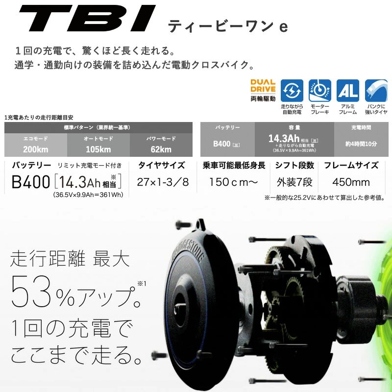 BRIDGESTONE / ANCHOR ( ブリヂストン / アンカー ) 電動アシスト自転車(e-bike) TB1-E ( ティービーワン1-E ) E.Xブラック 450 ( 適正身長150cm〜 )