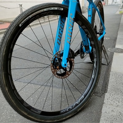 メインコンポは1×11のGRXの上位グレードRX800系、イーストン製ハンドルステムやホイール、FOX製ドロッパーシートポストなど、実用性重視でフルカスタムです。