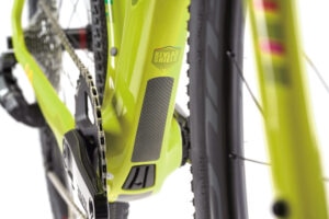 キングジデコはどんな路面でも速く走れることを目指して開発されました。MTBスタイルのタイヤで荒れた路面を走ると、跳ね飛ばされた砂利がフレームの前方下部にぶつかるかもしれません。