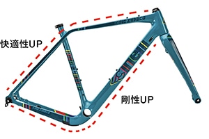 フレーム構造の心臓部は、トップチューブとシートステーをつなぐ金型形状にあり、繊維を途切れなくつなげることで、大幅な軽量化、レイアップの最適化、そして何よりも後輪から入る振動を効率的に発散するために開発されました。