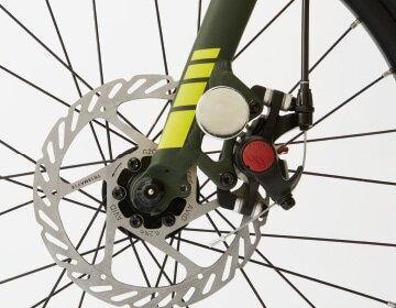 悪天候でも高い制動力を発揮するディスクブレーキシステム。重量と制動力にバランスの取れた160mmローターを使用。