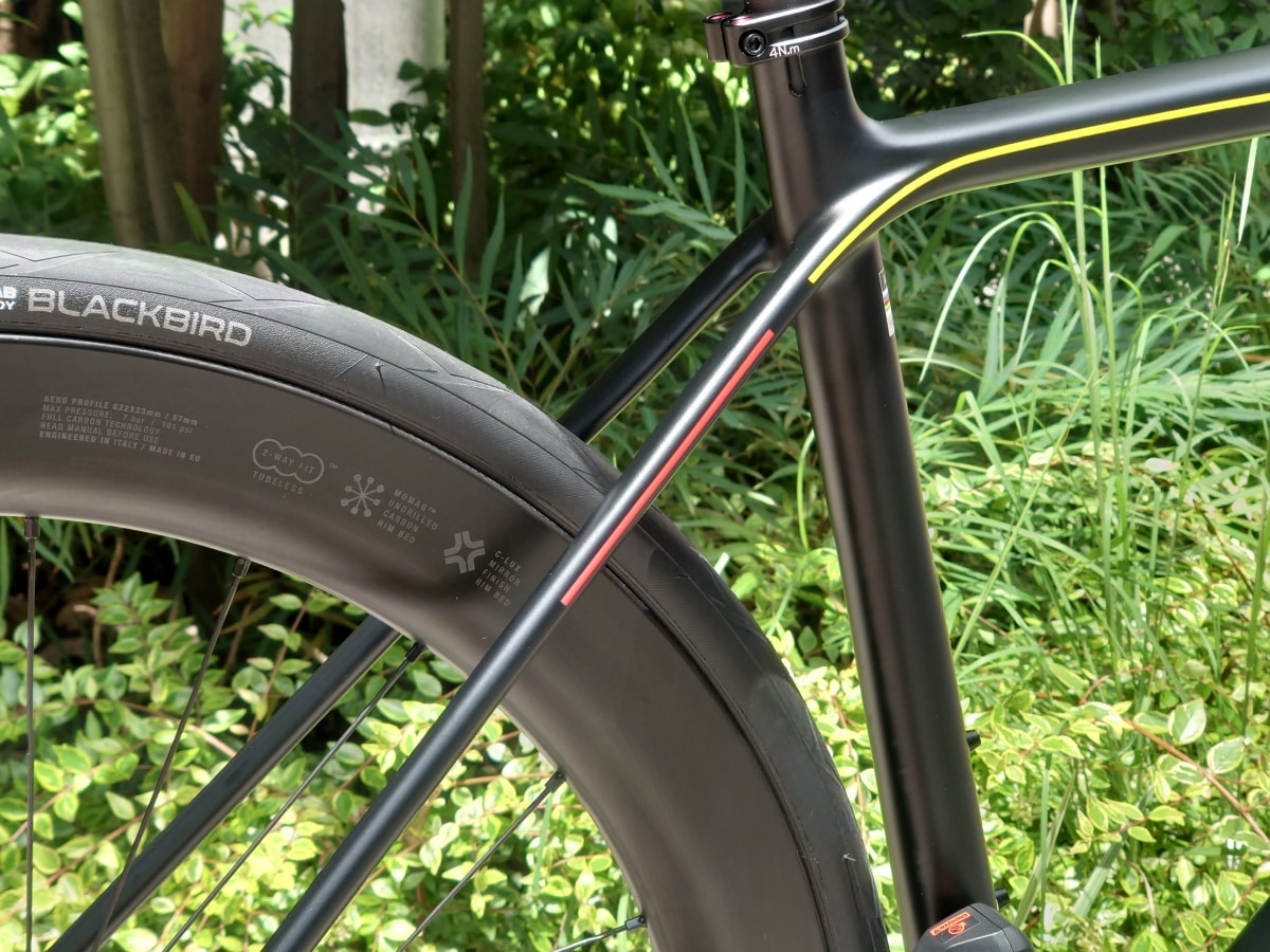 クライミング向けフレームのコンセプトですが、ディープリムのホイールを合わせることにより平坦でも快適で速いバイクに仕上がりました!!