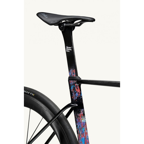 TDFスペシャルエディションとして用意されるのは、印象的なスプラッシュカラー。 フランスを象徴する、赤・白・青のトリコロールのペンキを飛散させたようなグラフィックは、「フランスとその芸術文化を讃えるもの」だと、ファクターのクリエイティブディレクターであるジェイ・ガンジックは語っている。