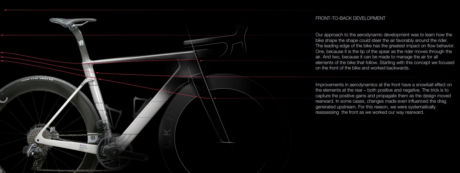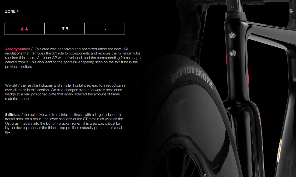 エアロダイナミクスの向上に重点を置きながらもスプリントでの正確なハンドリング、快適な乗り心地など長い過酷な路面での快適性、そして山岳を制覇するためのピンポイントな重量管理の必要性を見失うことはなかった。