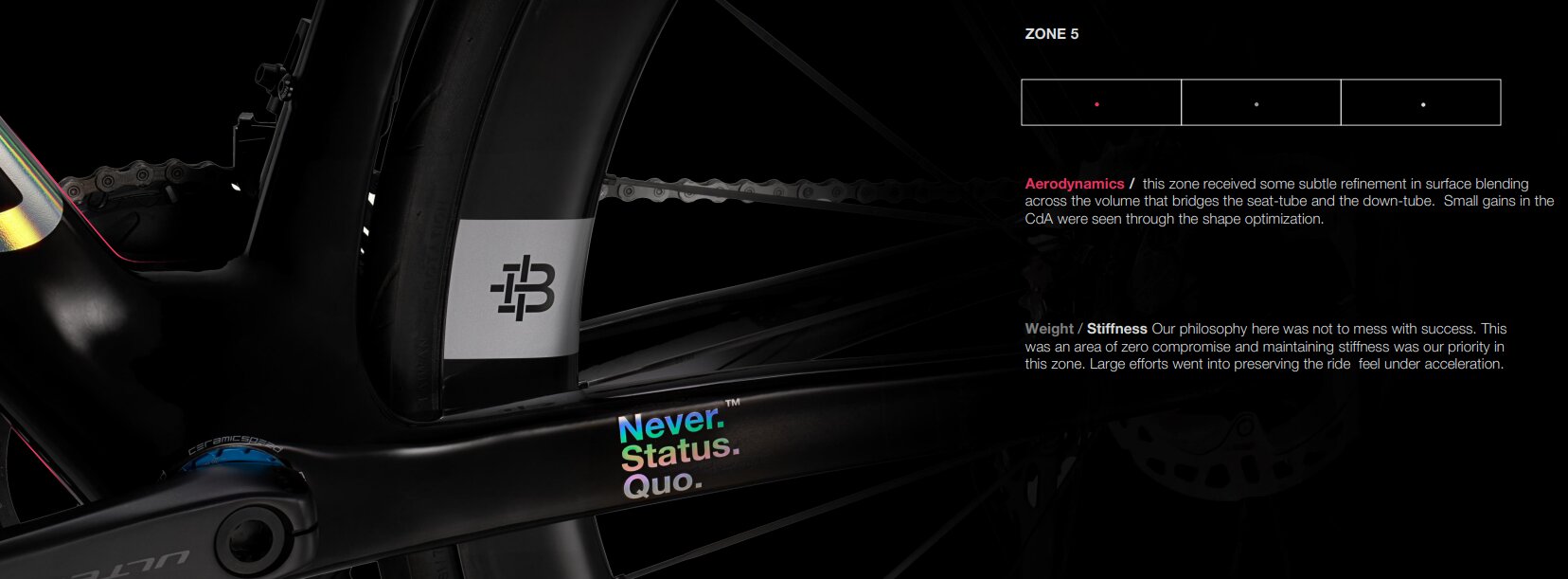 フレームセットを5つの「ゾーン」に分割して各パートごとに研究開発