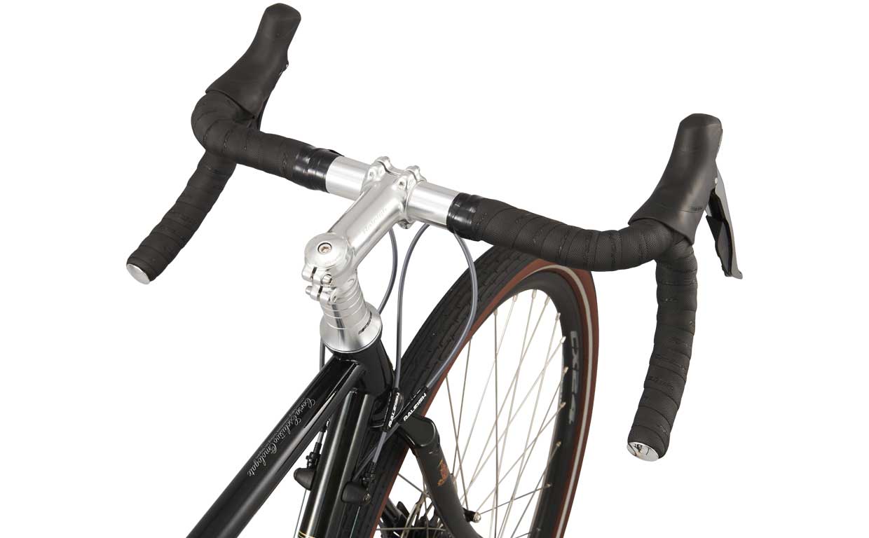 ディスクブレーキを装備したクロモリグラベルロード。700×40Cのボリュームあるタイヤとハンドルバッグの装着を考慮したフレアバーを標準装備。