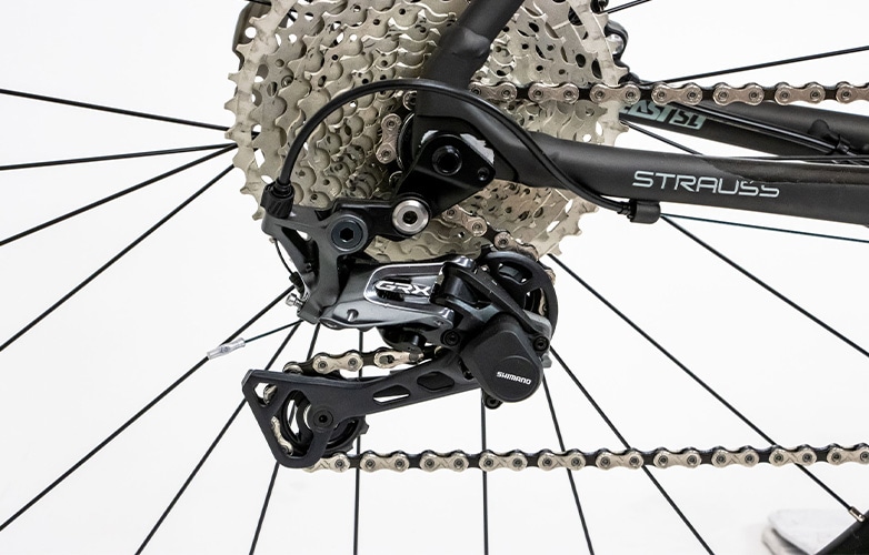 厳しい環境化でも確実な変速をもたらすスタビライザーつきSHIMANO GRXリアディレイラー
