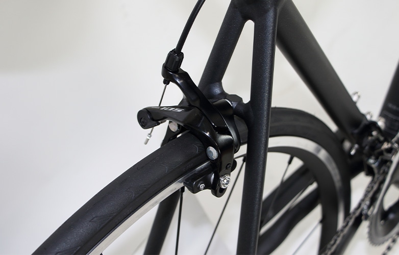 軽い力で高い制動力を発揮するSHIMANO R7000 105 キャリパーブレーキ。