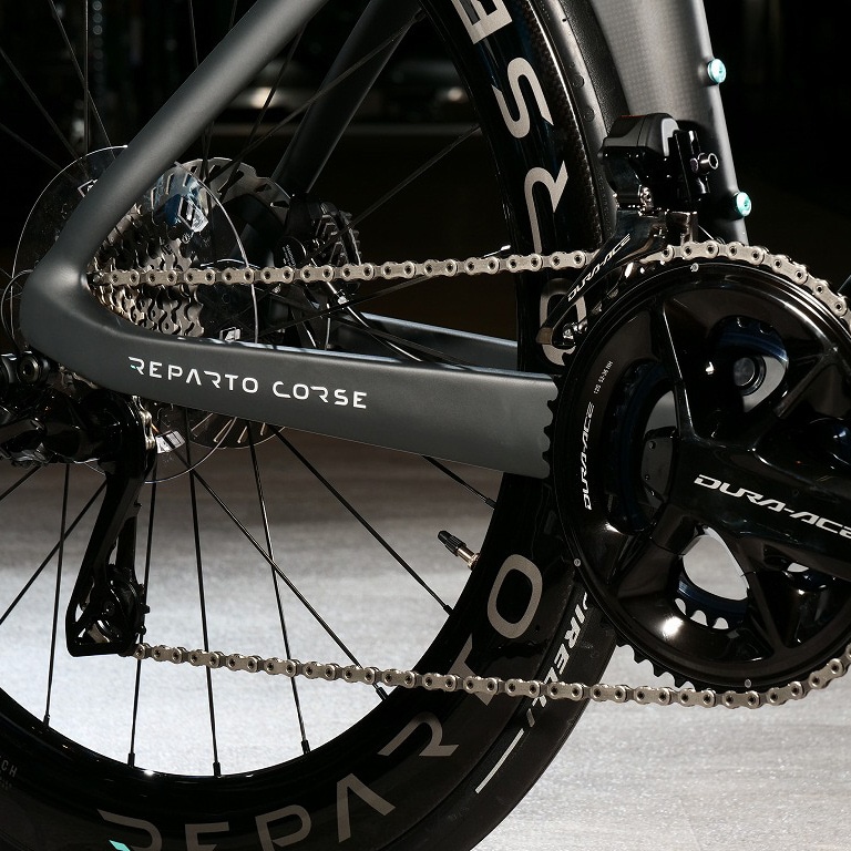 - ダウンチューブ左側面にREPARTO CORSEロゴ