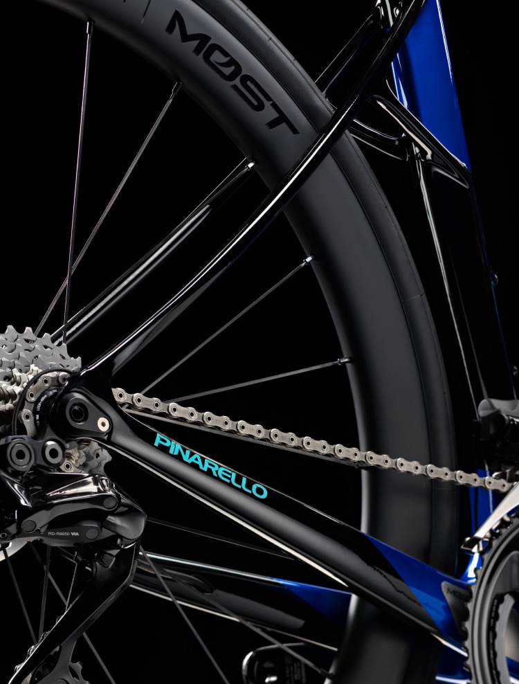 ピナレロは最初に、両方のペダルに作用する推力は同じであるものの、チェーンへの引力は右側のみに作用することを理解しました。このため、すべてのフレームはこれらの不均衡な力を補償するように最適化されています。
