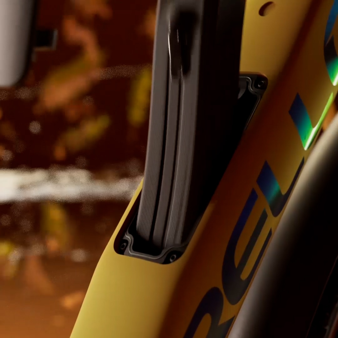 ダウンチューブは、750mlのボトルを使用する際の空力効率を向上させるために特別に設計されています。ボトルケージを外すことなくアクセス可能な収納スペースを設け、ダウンチューブ内に統合型ツールバッグを収納できるようにすることで、サドルバッグの使用が不要となり、これにより空力効率が向上し、貴重なワットを節約できます。