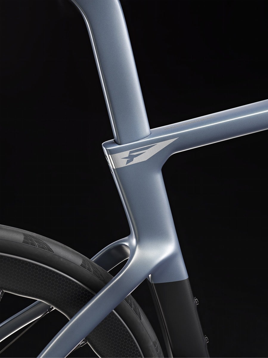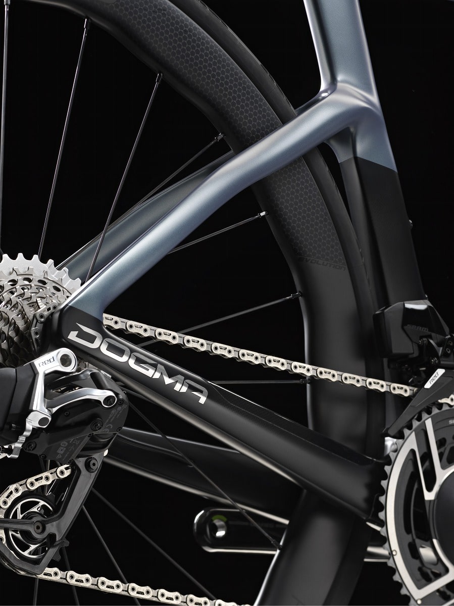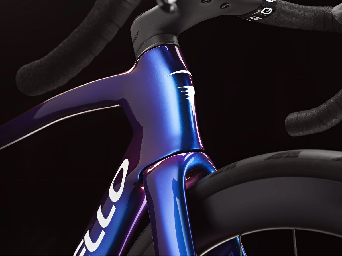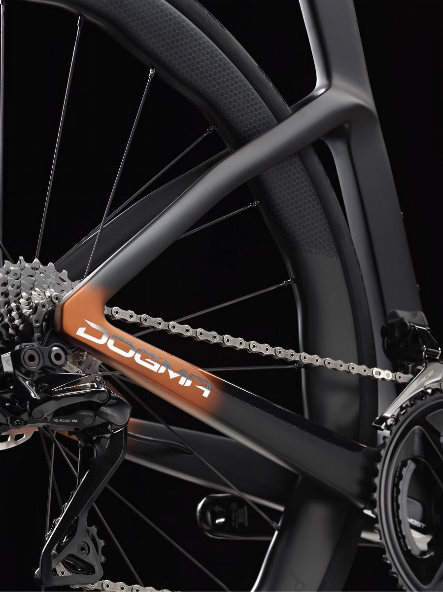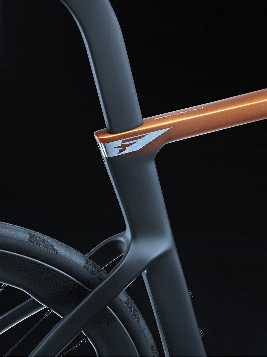 独自のヘッドチューブノーズ形状 - 2014年にDOGMA F8で初めて導入され、多くの競合他社に模倣されたもの - が再び進化しました。ノーズエリアの体積と幅を8mm減少させ、より流線型のデザインにより前面空力性能が向上しました。