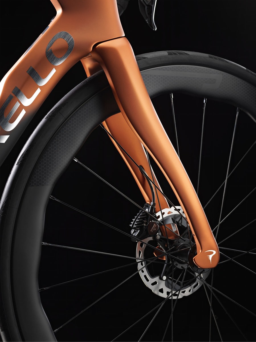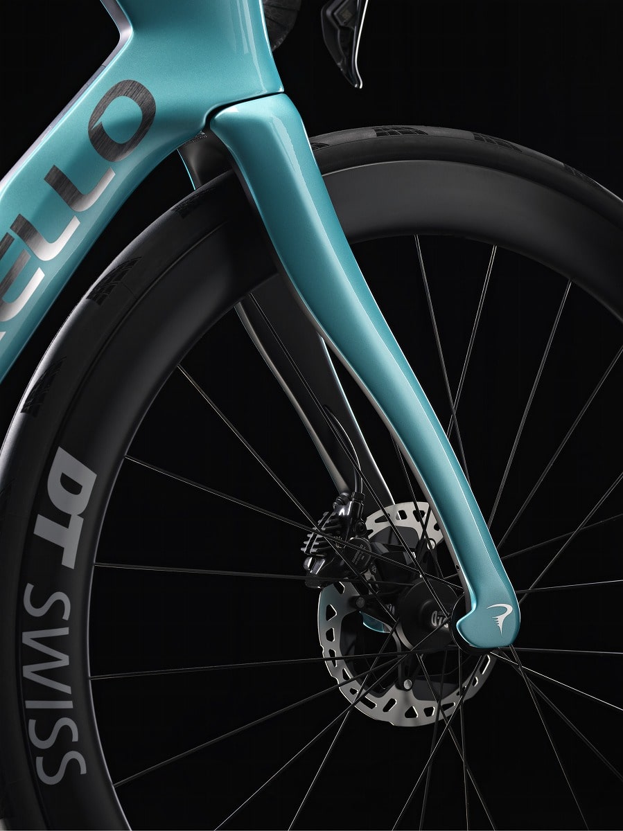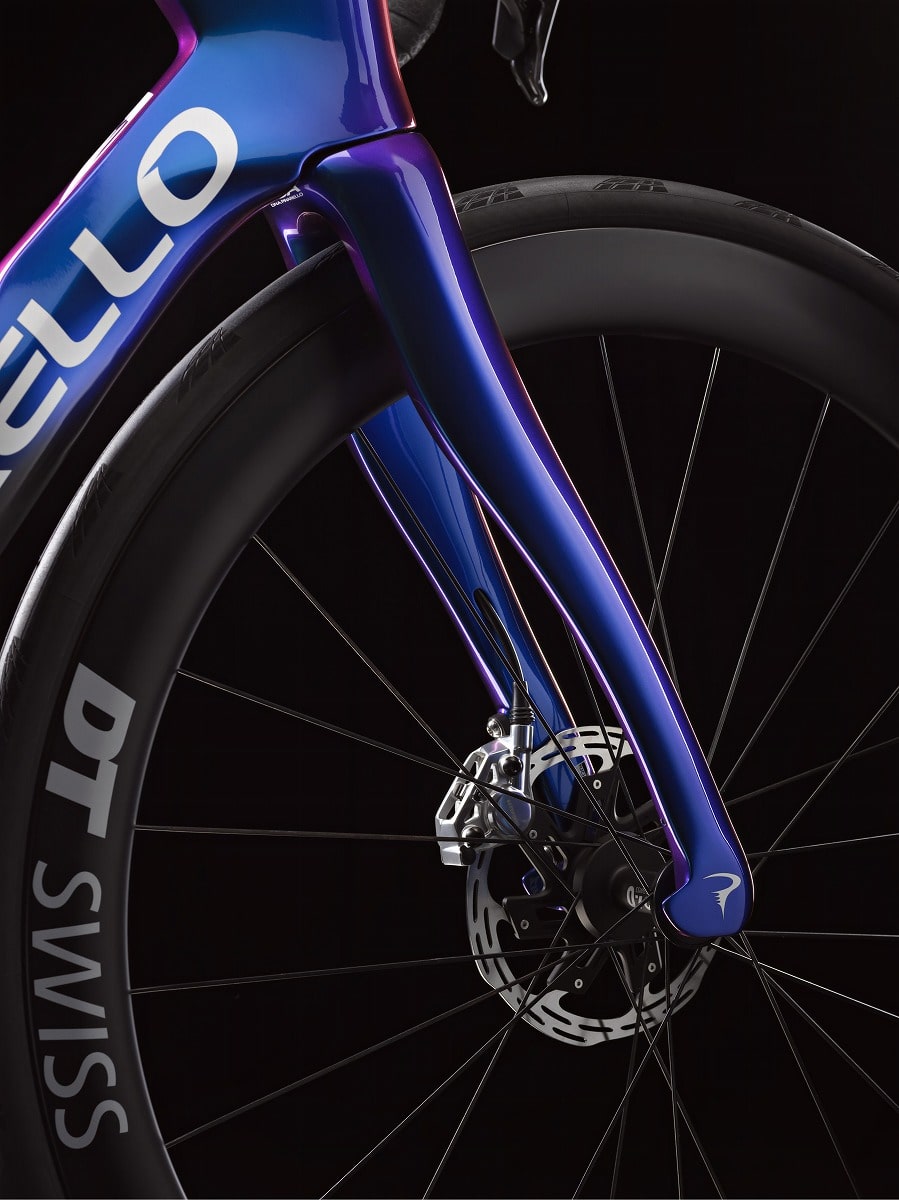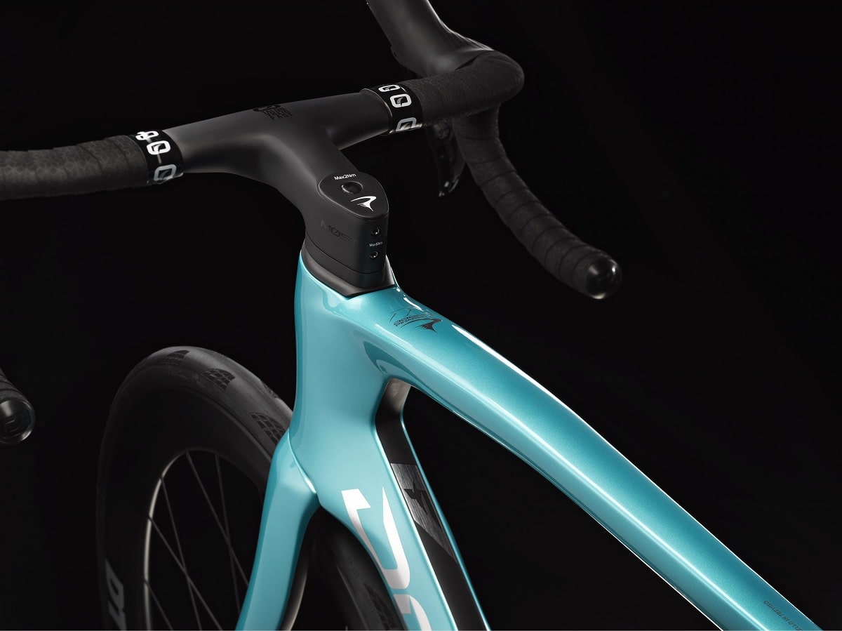 独自のヘッドチューブノーズ形状 - 2014年にDOGMA F8で初めて導入され、多くの競合他社に模倣されたもの - が再び進化しました。ノーズエリアの体積と幅を8mm減少させ、より流線型のデザインにより前面空力性能が向上しました。