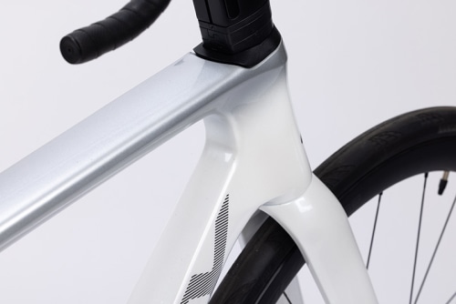 最適化された直線的なテーパー形状のトップチューブはヘッドチューブ周辺の剛性を確保し、横風に対する安定性向上に加え、空気抵抗を低減します。