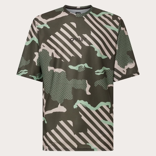 OAKLEY ( オークリー ) 半袖ジャージ RIDE FREE SS JERSEY ( ライド フリー ショートスリーブ ジャージ ) グリーン ストライプ/グリップ カモ M