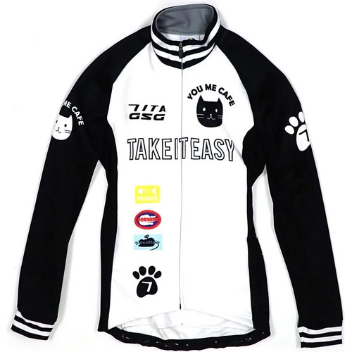 手描き風のカフェキャットがモチーフの女性専用サイクルジャケット。
