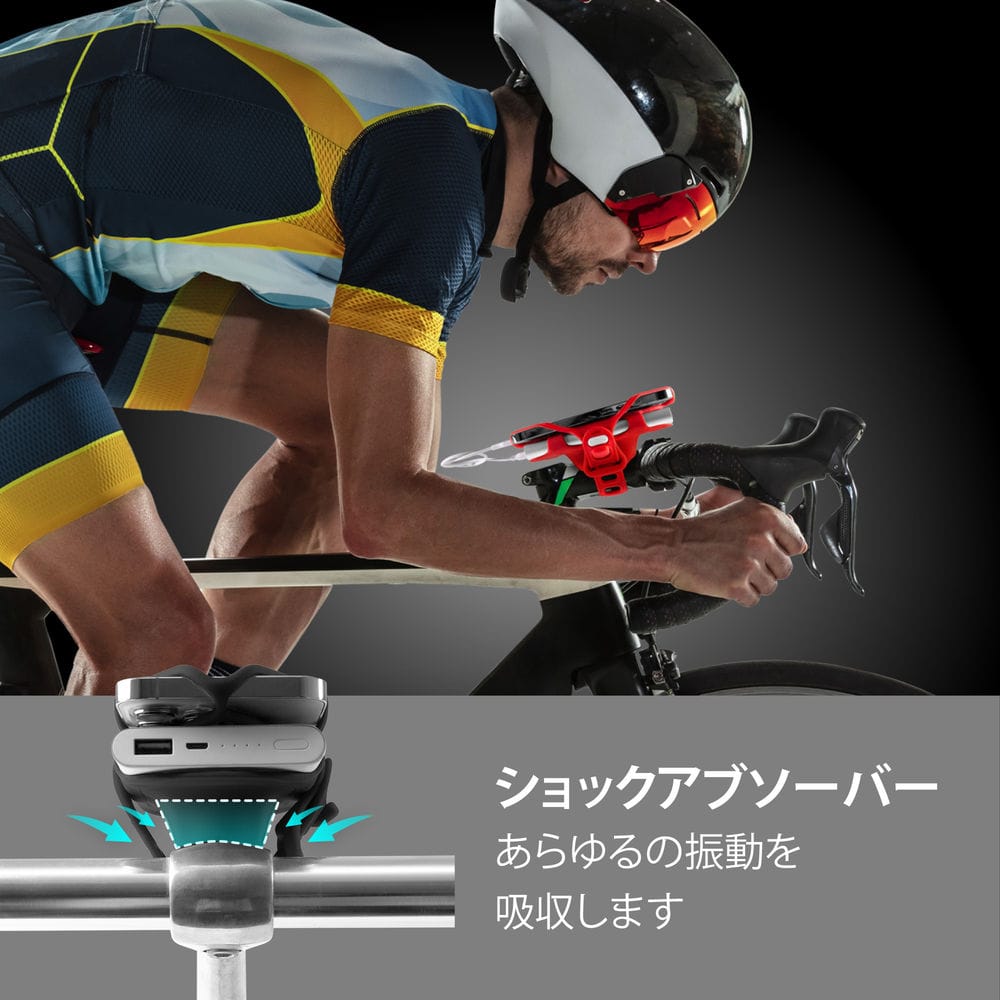 - 衝撃吸収素材でスマホとモバイルバッテリーを走行の振動からしっかりガード。