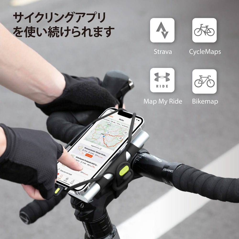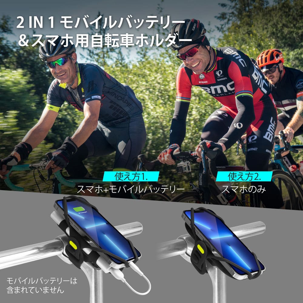 スマホ単体を自転車に取り付けるだけでなく、スマホと同時にモバイルバッテリーを自転車に固定することもできます。
