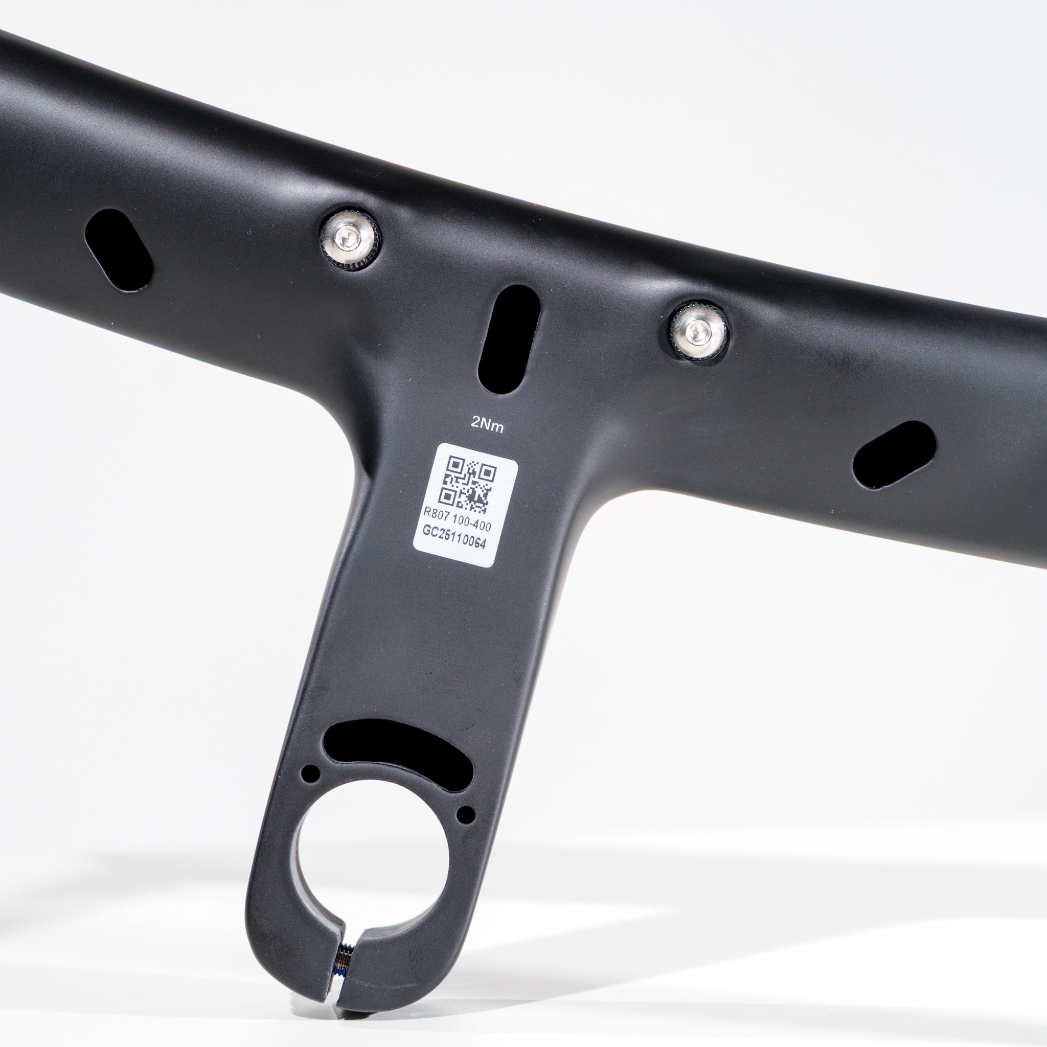 素材には高性能カーボンT700/T800を使用し、 欧州ロードバイクブランドの生産を数多く手がけてきた実績ある工場を選定し、 グローバル基準の品質管理体制のもとで製作しました。 開発および量産段階では、落下テストを含む各種強度試験も実施しており、 信頼できる品質と高い強度を兼ね備えた製品に仕上げました。一般的な一体型カーボンハンドルと比較
